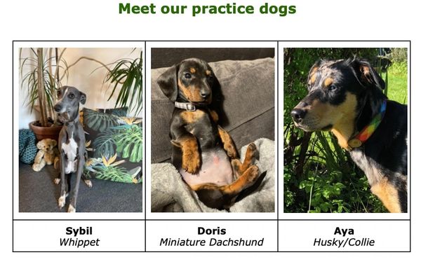 Stefano & Nicky both bring their dogs in to the practice on various days. Their dogs remain with them in their sessions and they manage this although you may meet them in the waiting room if you are seeing one of the other therapists.